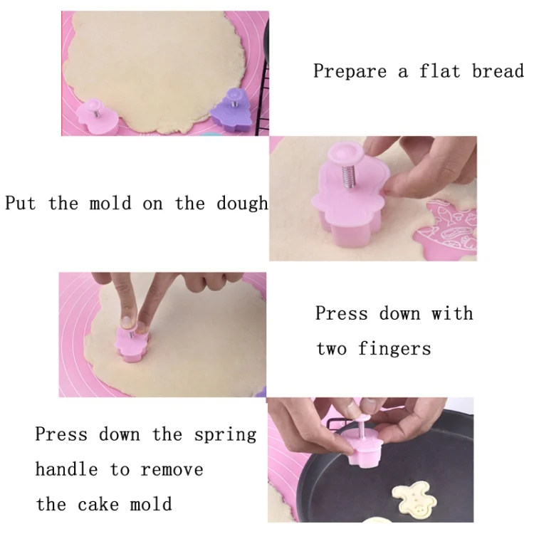 4 in 1 Three-Dimensional Fondant Biscuit Embossing Mold Push-Type Cake Mold Random Style Delivery