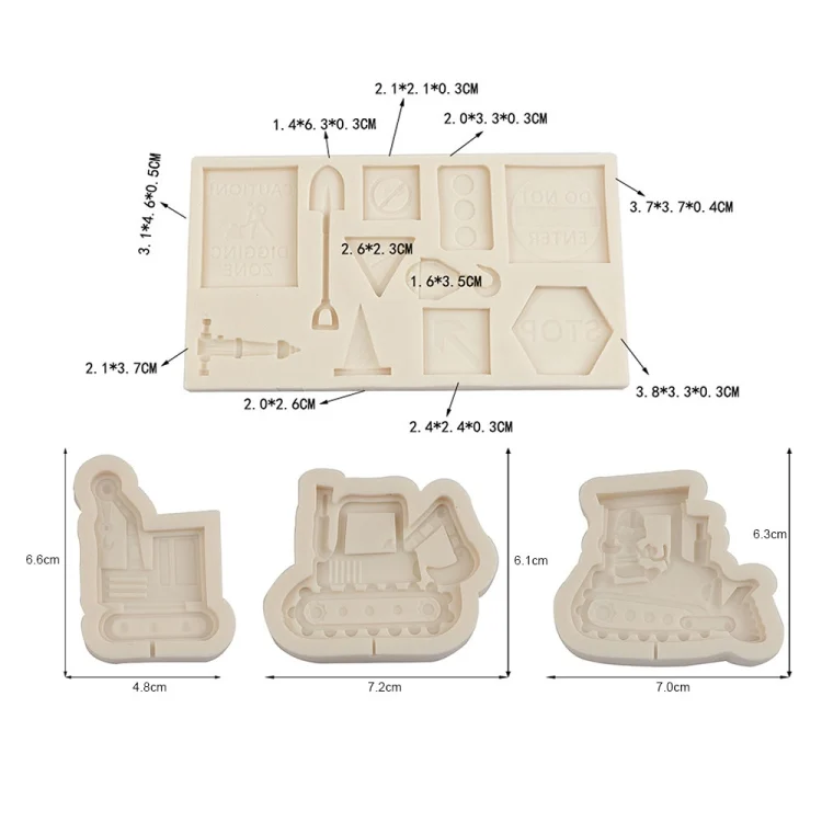 Cartoon Construction Site Tools Engineering Car Cake Decoration Molds