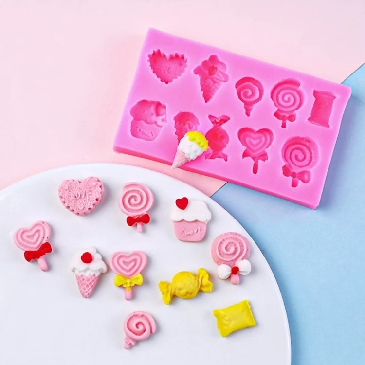 G114 Candy Lollipop Ice Cream Shape Silicone Mold Chocolate Biscuits Cake Decoration