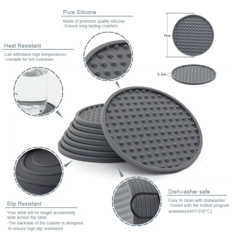 2. The coaster is made of food-grade silicone environmentally friendly material, flexible and elastic, not easy to deform, good resilience, durable