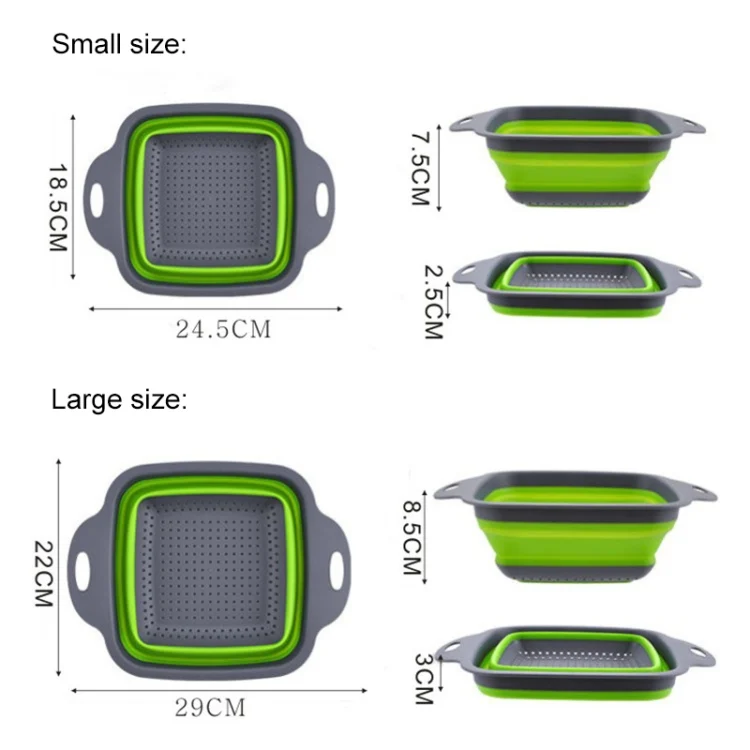 5 Sets Square Foldable Drain Basket Set Kitchen Silicone Fruit Vegetables Retractable Filter, Specification: Small + Large
