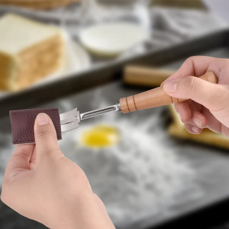 Bread Trimming French Stick Cutting Knife Dough Bisector Curved Stainless Steel Dough Cutter With Wooden Handle