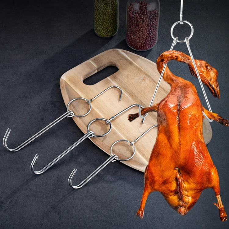 Stainless Steel Double Ring Duck Cooker Hanger Outdoor Barbecue Hanging Hook Stand