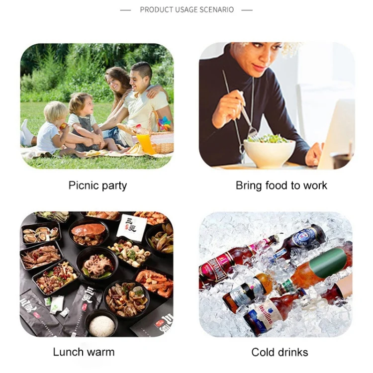 6. Introduction: Large-capacity package type, can hold two fresh-keeping boxes, 6 cans of Coke, breakfast and lunch can be easily done, triple insulation, effectively isolate the external temperature, keep cold, keep fresh