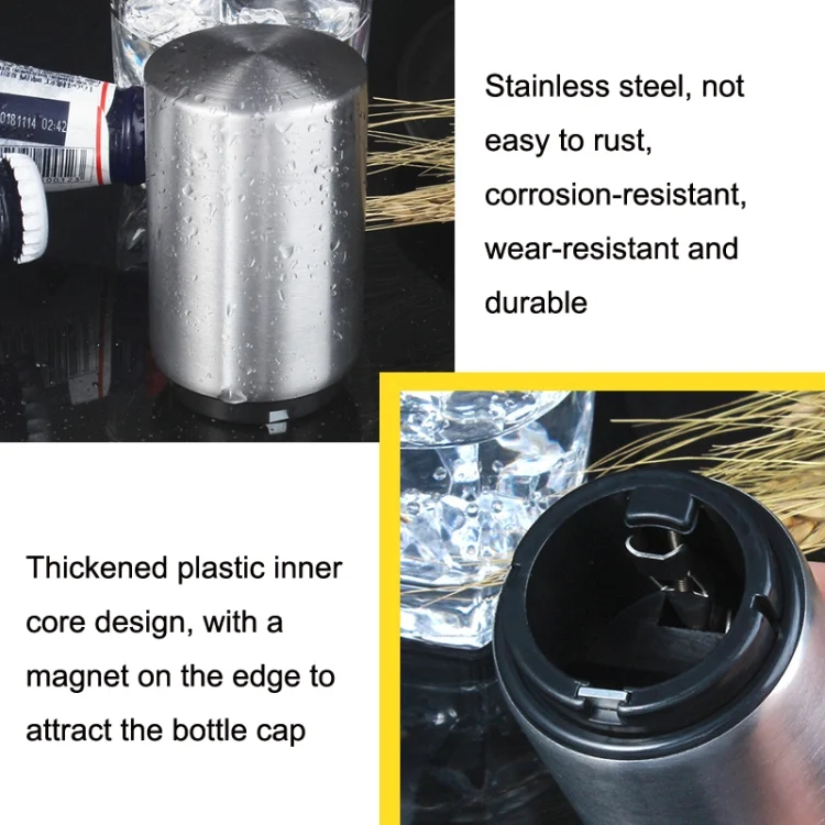 Magnetic Automatic Beer Bottle Cap Opener Stainless Steel Push Down Beer Opener Kitchen Gadgets, Size: 8.5 x 5.2cm