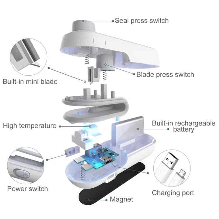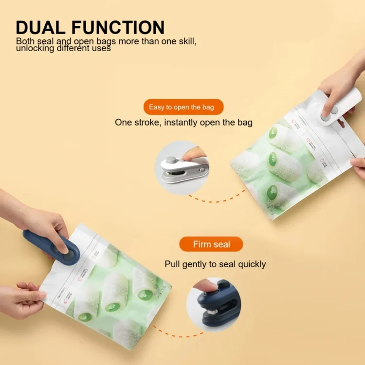 5. Separate independent buttons, open + seal the bag 2 in 1