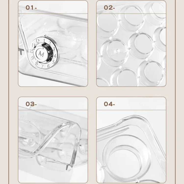 9. Size: medium single layer 12 grid about 16.5 x 20 x 7.5cm, medium double layer 24 grid about 16.5 x 20 x 14cm, large single layer 20 grid about 21.5 x 24.8 x 7cm, large double layer 40 grid about 21.5 x 24.8 x 14cm, extra large single layer 30 grid about 29.5 x 26 x 6.5cm, extra large double layer 60 grid about 29.5 x 26 x 13cm