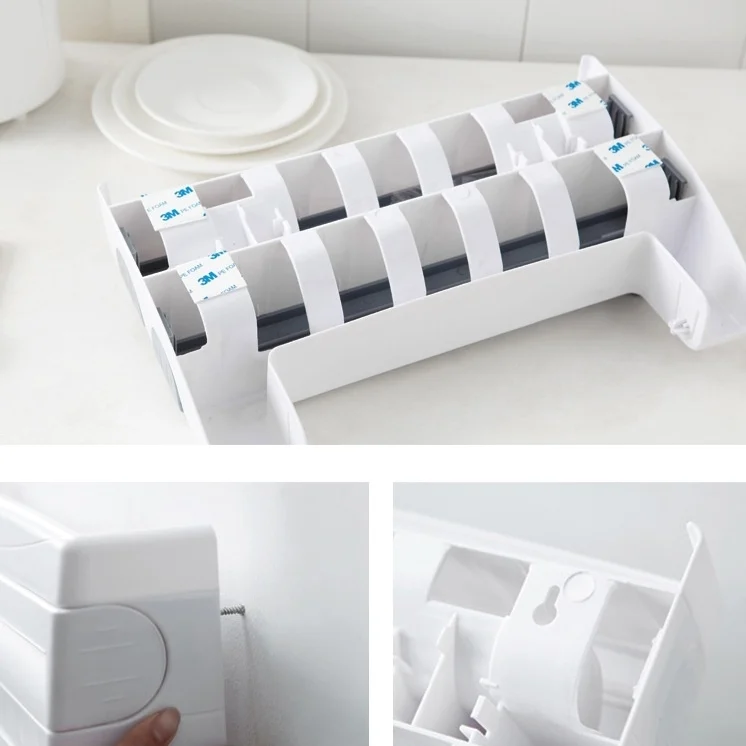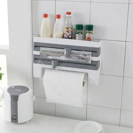 4. Two kinds of cutter, round for cutting tin foil, oil-absorbing paper; suitable for cutting cling film.Storage paper towels, plastic wrap, tin foil, etc., the top can also put some seasonings.