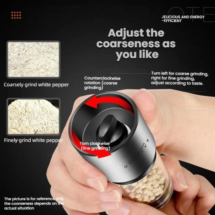 2. Rotate clockwise for fine grinding and counterclockwise for coarse grinding, allowing you to freely switch the grinding particle size.