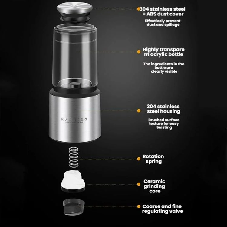 4. The high-transparency acrylic body enables you to observe the remaining amount of spices without opening the lid.