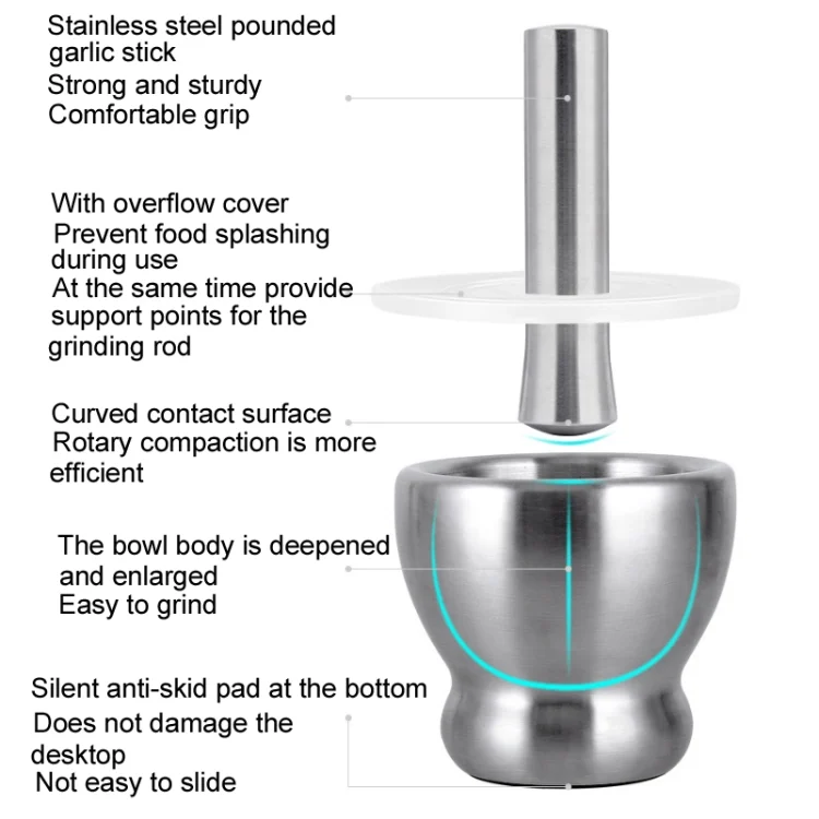 3. With a spill-proof cover, it prevents food from splashing during use, and at the same time provides a support point for the grinding rod