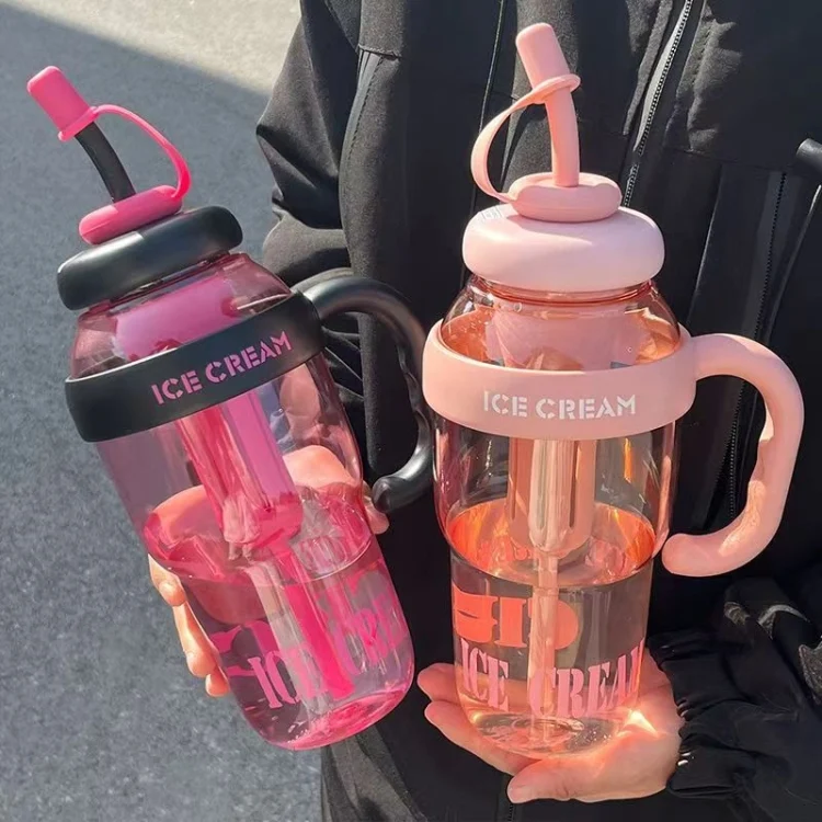 1200ml Large Capacity Lucky Belly Cup Handheld Portable Straw Cup with Tea Drain