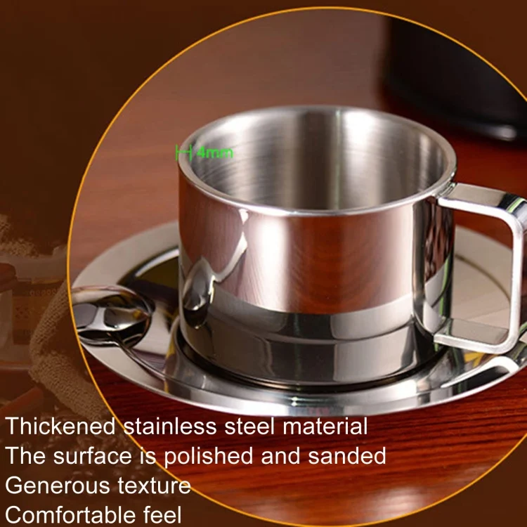 304 Stainless Steel 3 In 1 Double Layer Coffee Cup With Dish and Spoon Heat Insulation and Anti-Scald Milk Tea Mug