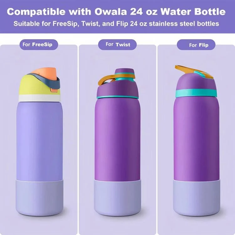1. This product is a set of 3 silicone bottom protectors, specifically designed for 24-ounce Owala FreeSip/Twist/Flip stainless steel water bottles, providing a secure fit and long-lasting protection.