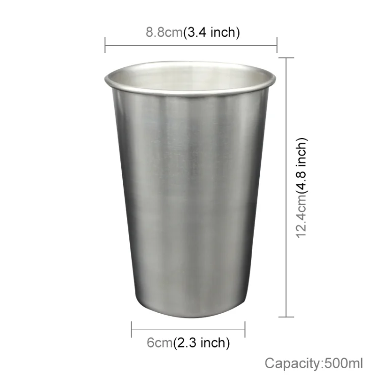 500ml Single Wall Electropolished Stainless Steel Curling Edge Beverage Cup With Rubber Circle Band And Cap