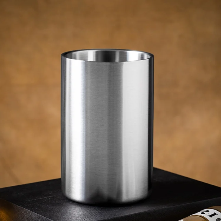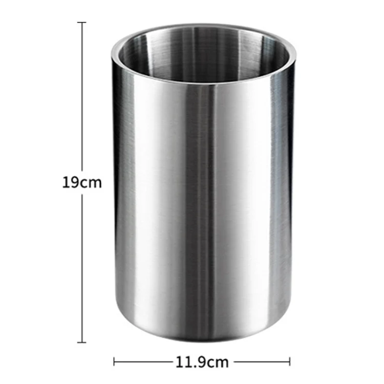 Large Capacity Thickened Stainless Steel Round Ice Bucket Bar Double-Layer Champagne Beer Barrel