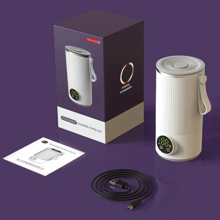 1. Rechargeable heating mixing cup, can be used for heating and stirring coffee, milk powder, tea, beverages, granules, etc.