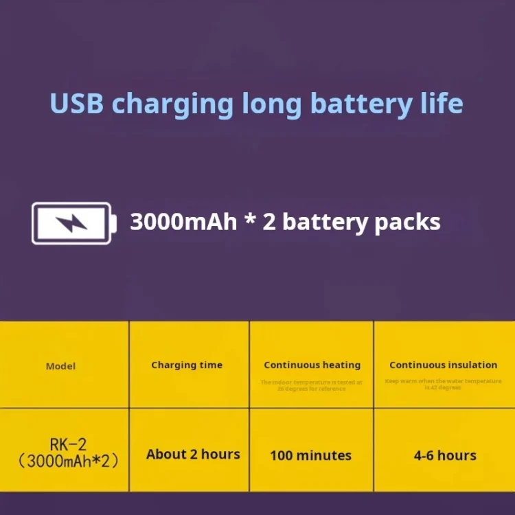 4. Charging time is about 2 hours, heating time is 100 minutes, and keeping time is about 4 hours. Heating cannot be done while charging.