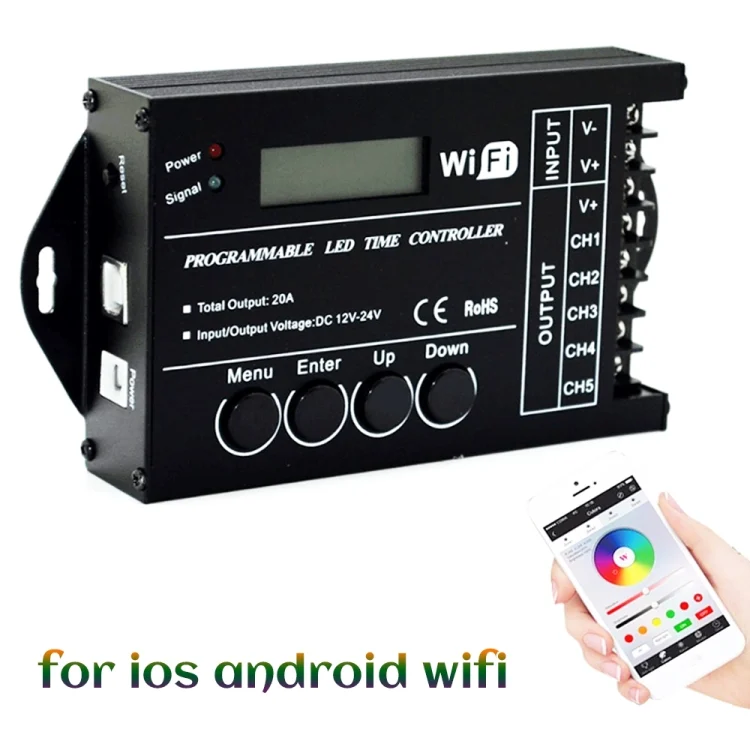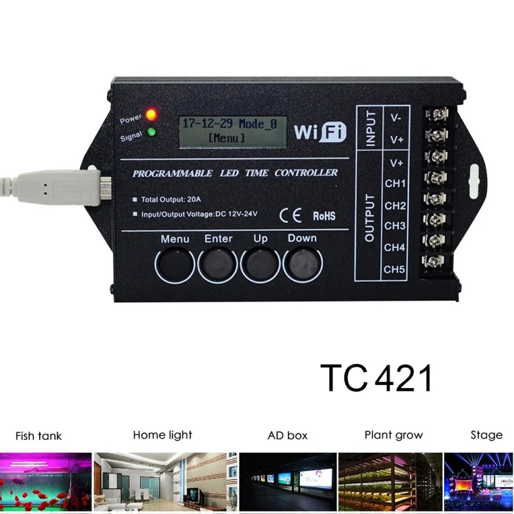 TC421 20A WiFi Programmable 5CH RGB LED Time Controller for Aquarium, Fish Tank, Plant Growth, DC 12-24V