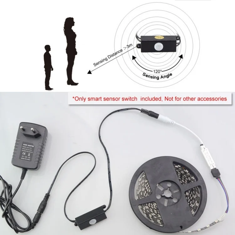TDL-2024 PIR Sensor Switch LED Connector with 5.5 x 2.1mm DC Male & Female Adapter for LED Strip