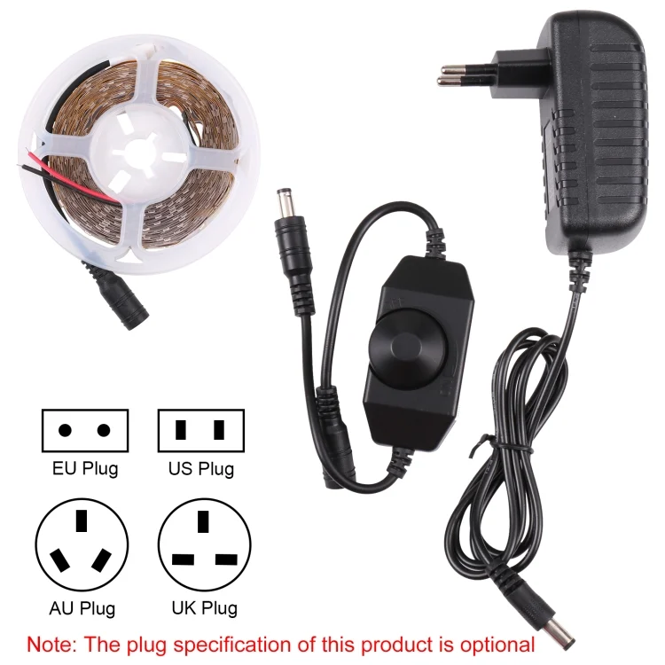 Bare Board 2835 SMD Dimmable White Light / Warm Light LED Rope Light, 60 LED/m, Length: 5m, 12V 2A 100-240V
