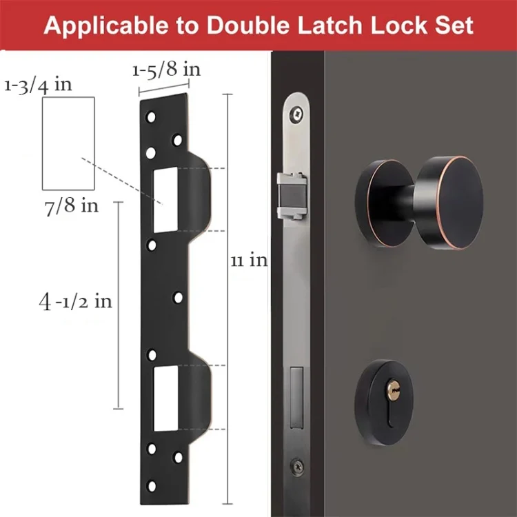 3. Repair broken door frames: One-piece design to replace the standard independent latch plate. It can hide defects or broken areas in the door frame. It solves the problem that the door handle latch and deadbolt cannot be stuck. The size of the hole is large enough to allow seasonal ground movement and keep the latch working properly.