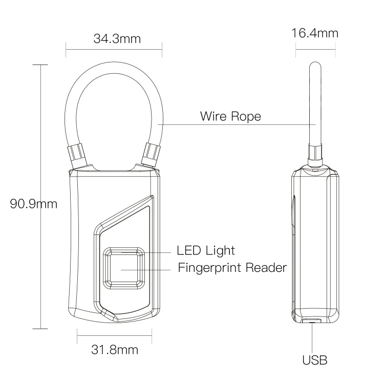Anytek USB Charging Waterproof Anti-theft Non-password Electrically Intelligent Fingerprint Padlock Size:3.2cm × 3.5cm × 9cm