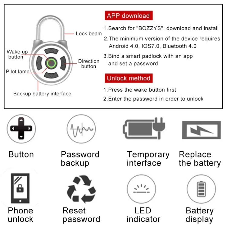Intelligent Bluetooth Key Password Padlock Remote Unlocking for iOS / Android