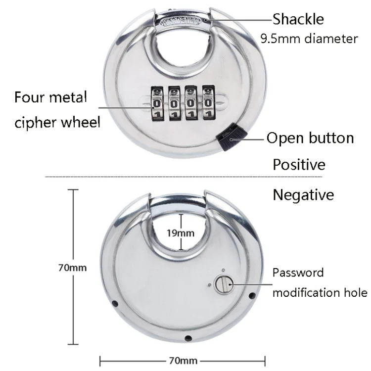 Stainless Steel Password Padlock 304 Waterproof And Rust-Proof Outdoor Courtyard Door Cabinet Lock Round Cake Lock