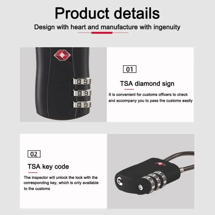TSA Approved Luggage Lock 3-Digit Combination Lock With Plastic Body Anti-Theft Steel Cable For Suitcases Travel Bags