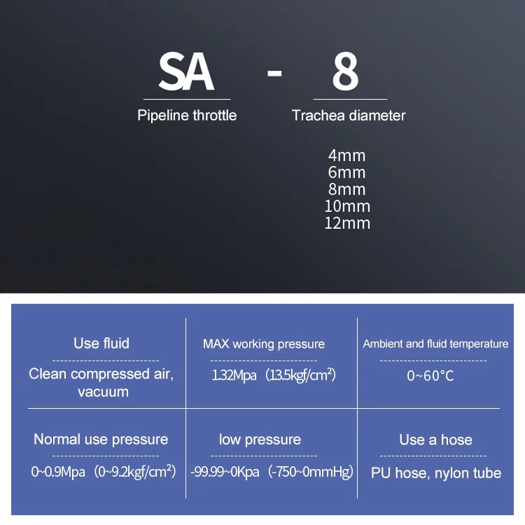 SA-4 LAIZE 2pcs Pipe Throttle Valve Quick Fitting Pneumatic Connector