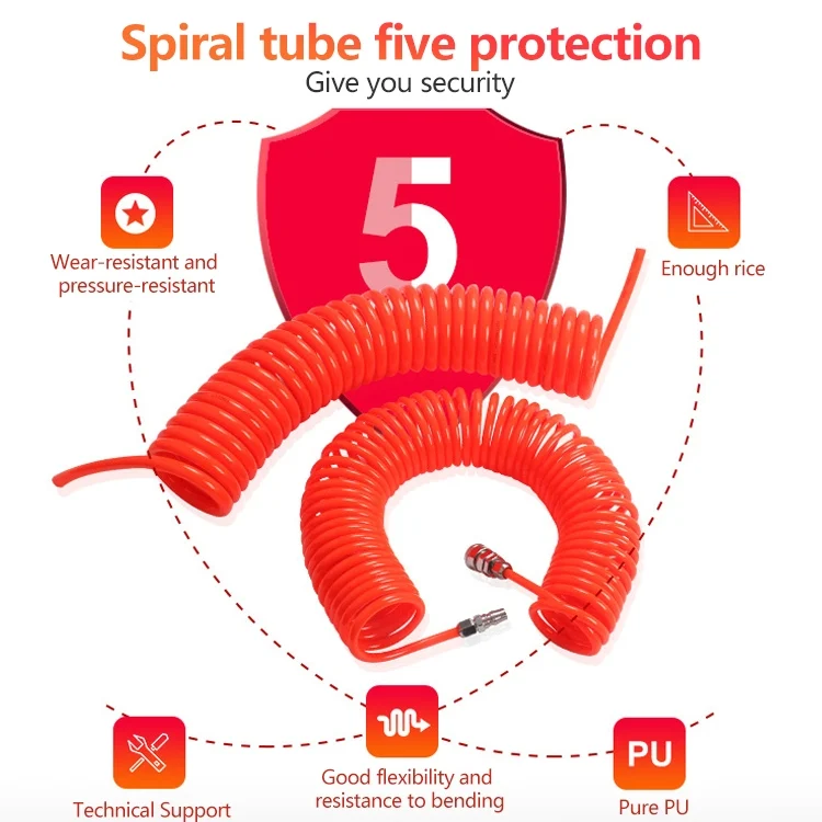 LAIZE Compressor Air Flexible PU Spring Tube with Connector