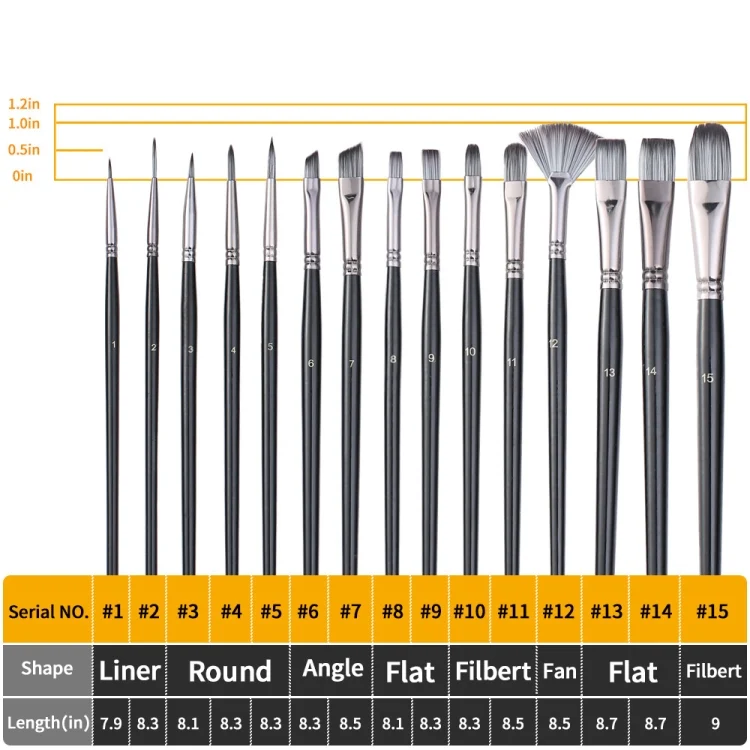 3. 15 acrylic paint brushes of different specifications to meet different needs
