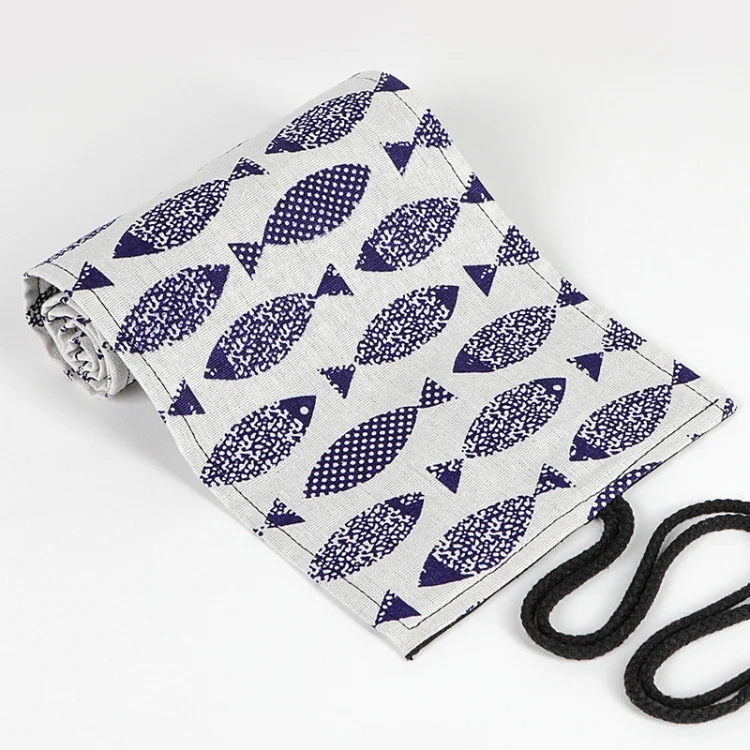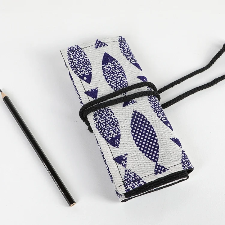 12 Holes Saury Hand Canvas Pen Curtain Color Lead Roller Pen Bag Storage Stationery Box