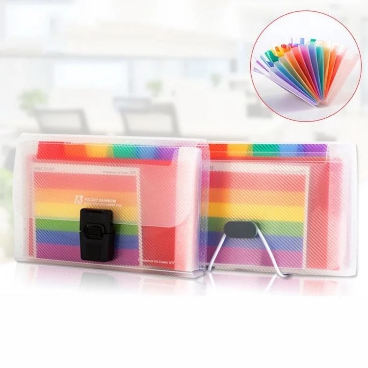 13 Grid Expanding File Folder A6 Document Buckle Lanyard Bag Multicolor Expanding File