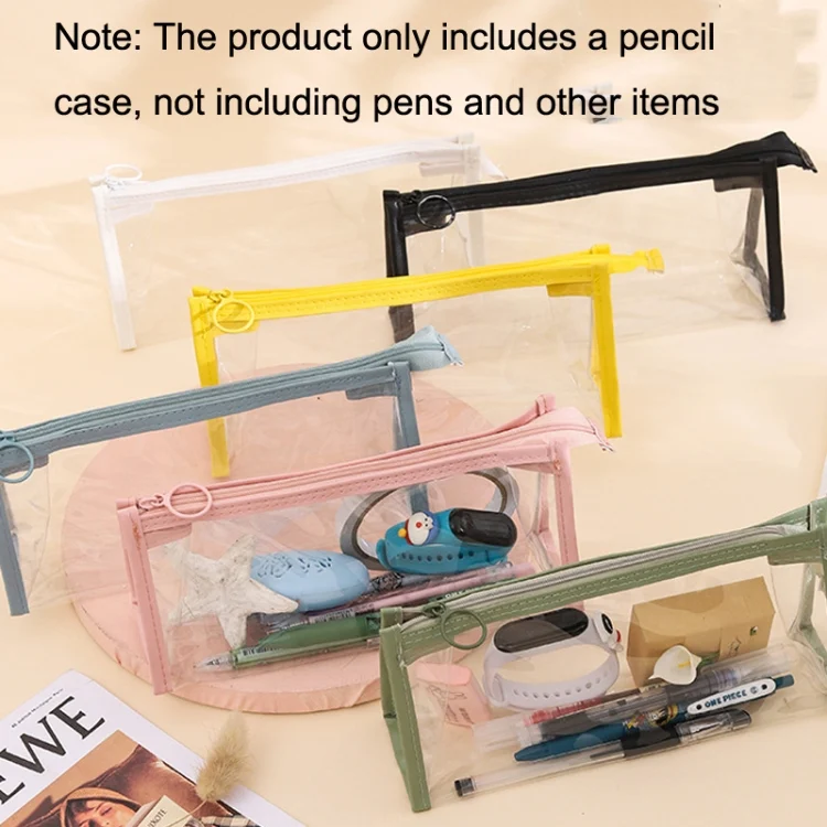 3pcs PVC Student Stationery Storage Transparent Pencil Bag Exam Transparent Zipper Pencil Bag