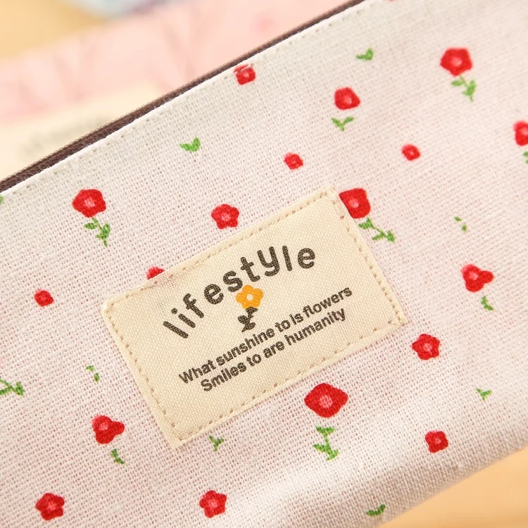 Cute Floral Canvas Zipper Pencil Cases Flower Tree Pen Bags