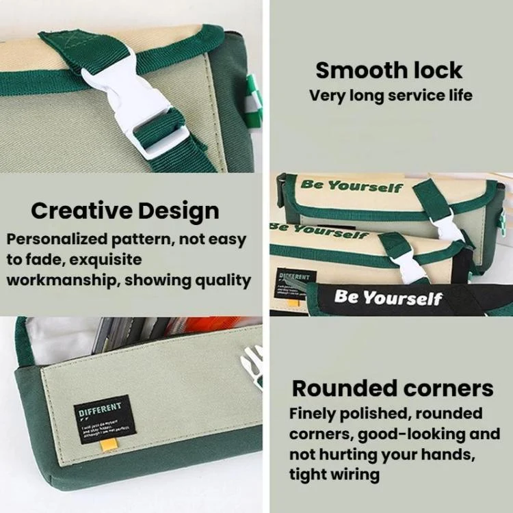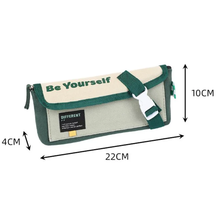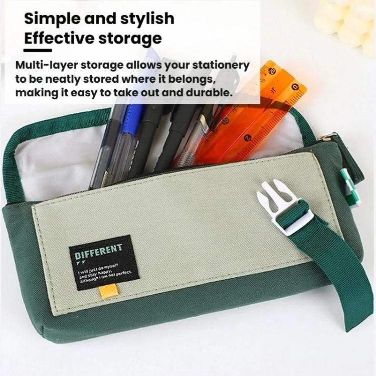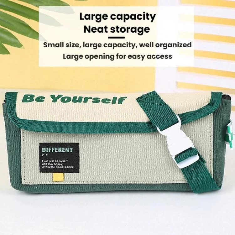 Double Layer Large Capacity Flip-Top Triangular Pen Pouch Simple Canvas Stationery Pouch