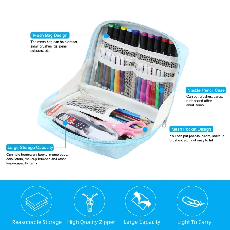 1. Premium Fabric: Large-capacity pencil holder bag is made of high-quality fabric, is strong and durable.