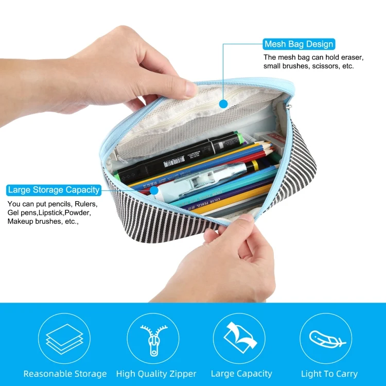 1. Premium Fabric: Large-capacity pencil holder bag is made of high-quality fabric, is strong and durable.