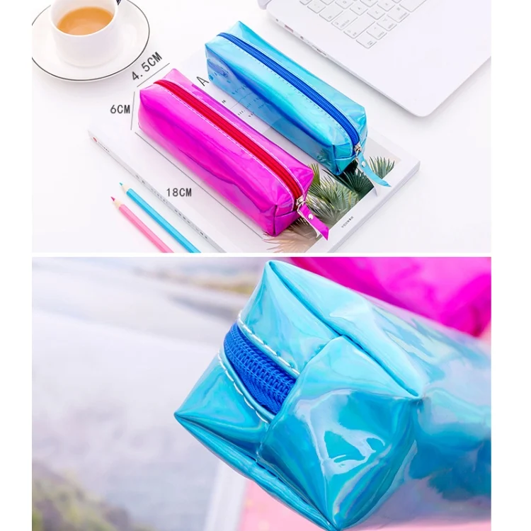 Iridescent Laser Pencil Case PU School Stationery Gift Cute Pencil Box