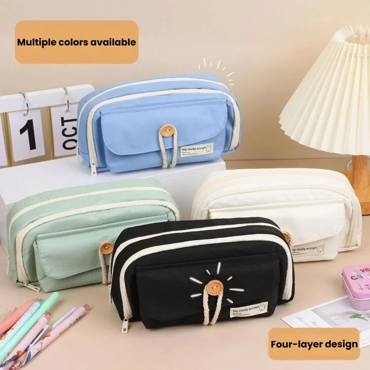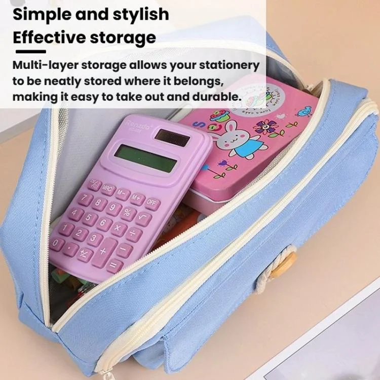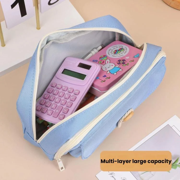 Large Capacity Button Pen Case Simple Stationery Pouch For Students