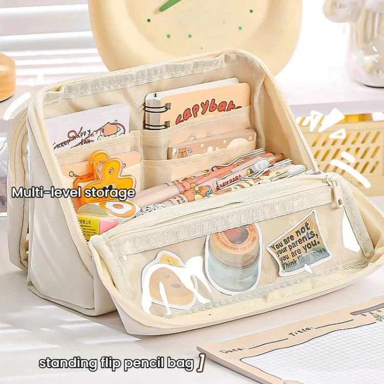 Large Capacity Pen Pouch With Detachable Transparent Layer Simple Stationery Pouch For Students