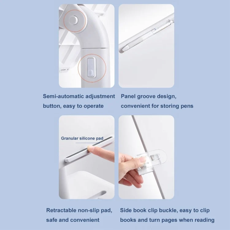 6. Side book clip buckle, easy to clip books and turn pages when reading