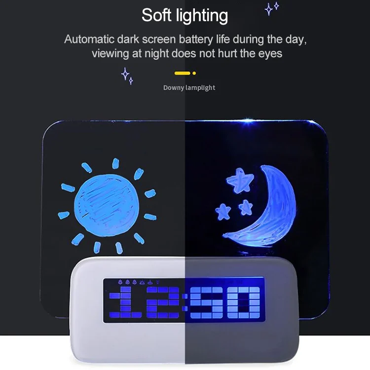 Multifunction LCD Digital Alarm Clock Thermometer + 4-Port USB HUB + Message Board with Blue or Green LCD backlight(White)