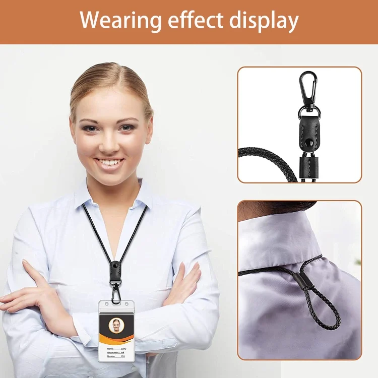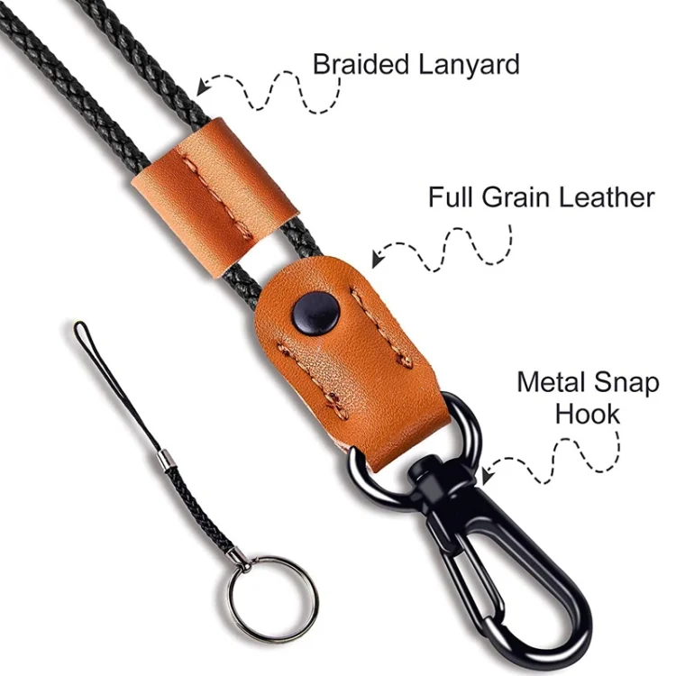 Hand -Woven PU Leather Lanyard Neck Strap For Phone Badge ID Credit Work Card