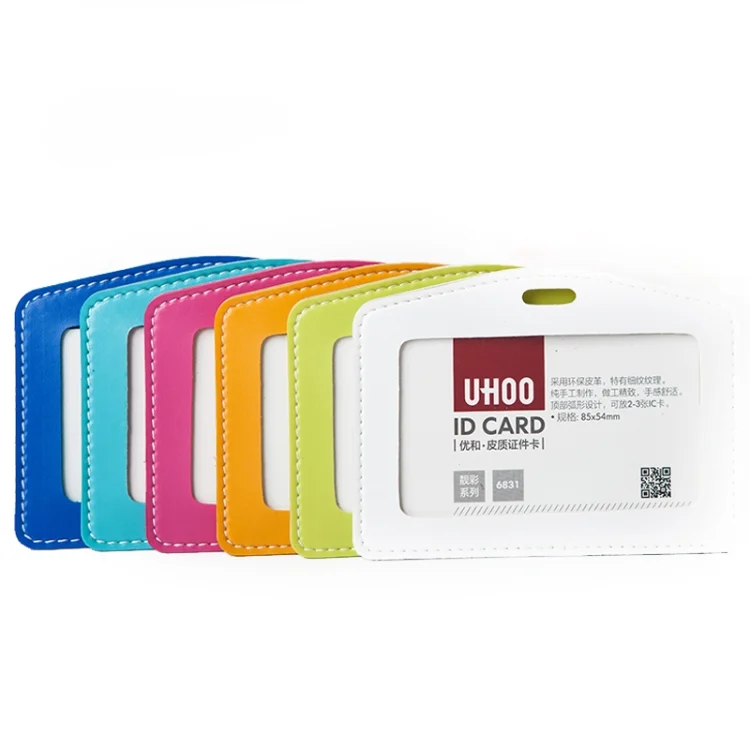 Women Business Llanyard Card Holder Leather Card Case for Student Candy Color Cute Cartoon Children Badge