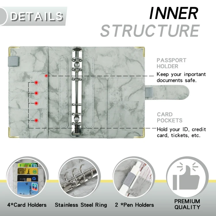 A6 Binder Budget Book Marbled Notebook PU Leather Binder