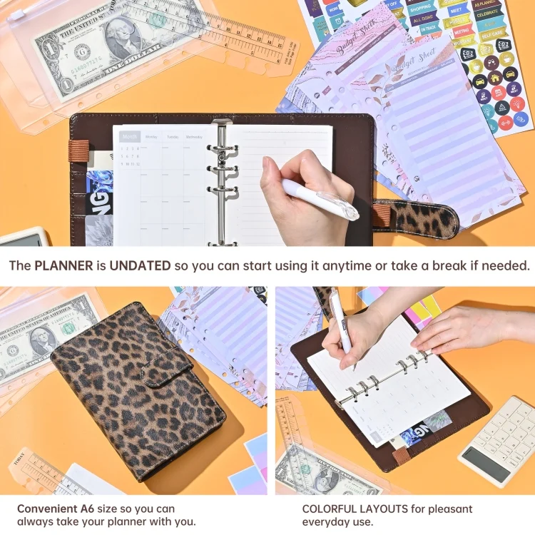 A6 Leopard Print Cash Budget Notebook Loose Leaf Financial Management Notepad