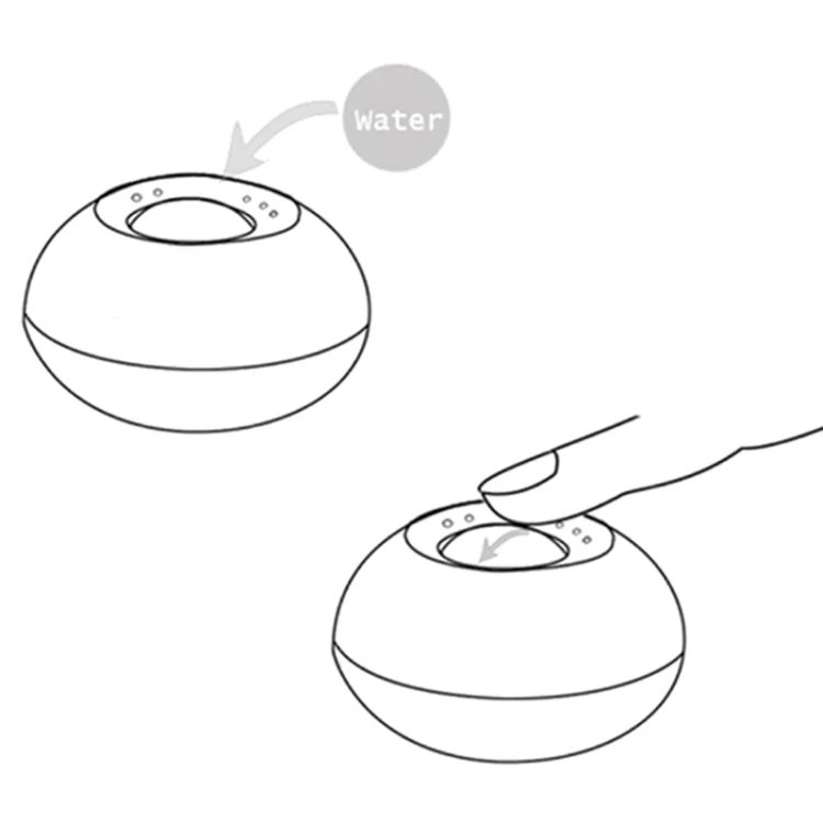 5. Instruction for use: First open the upper cover and fill with an appropriate amount of water. Next, put on the cover and roll the ball with your fingers to wet your hands.